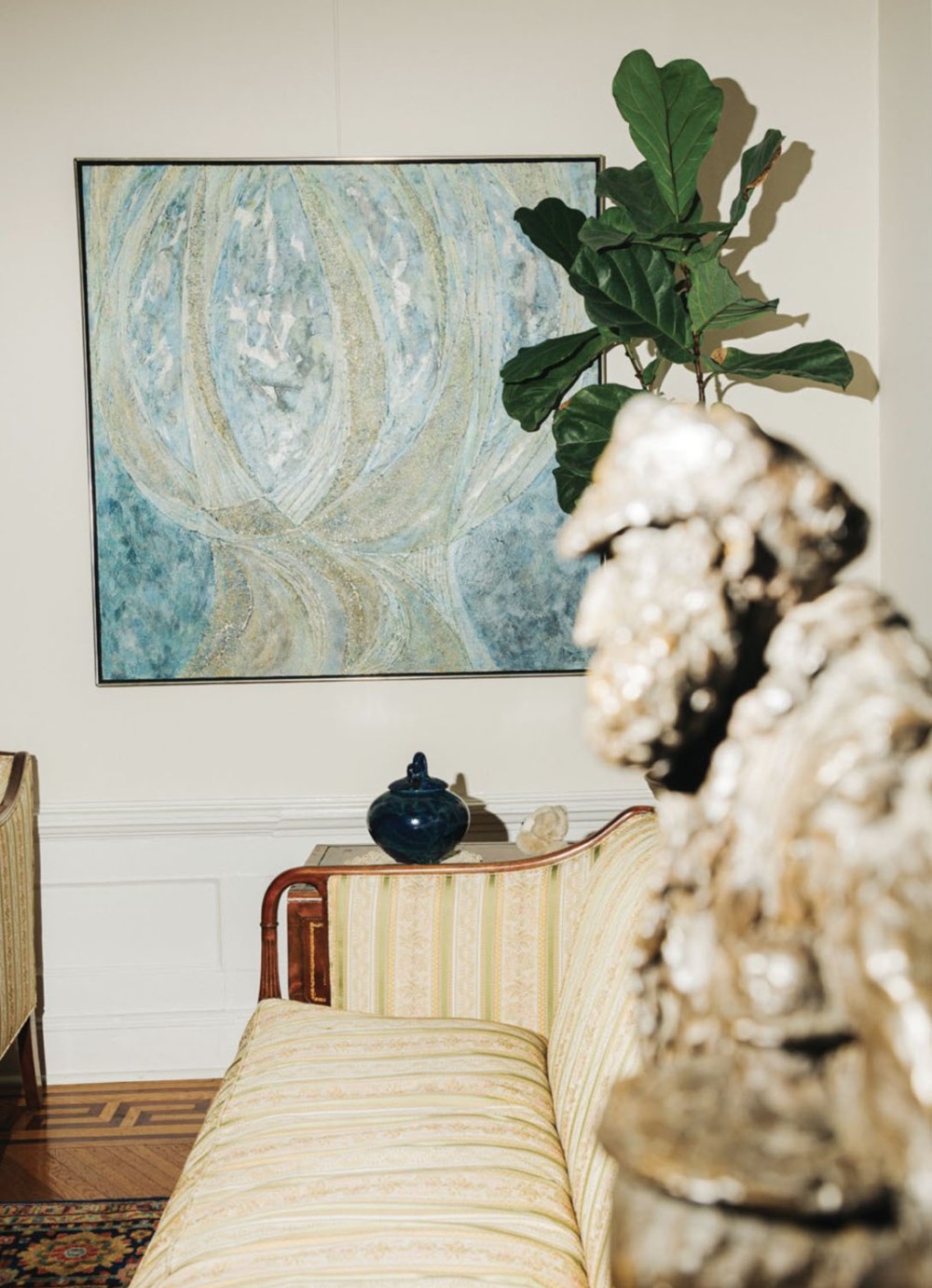 Rebecca: The people that sold us the house, I don’t know why they chose to live in a brownstone because they covered up many of the traditional features. They mirrored the dining room fireplace. They also covered the ceiling in the second storey bathroom with disco ballstyle wallpaper. Although, that was Daniel’s favourite room as a kid. A doctor and an artist is a rare combination. How does that work? Rebecca: I would die of boredom if I were living with another doctor. It’s a pleasure to live with Fred’s art and creative process. But Fred also has the personality of an accountant. He’s very methodical. I’m glad that one of us is. I’m big picture and he’s detail oriented.