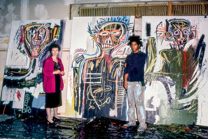 Art oracle, former gallerist, and award winning ballroom dancer Annina Nosei ushered in a generation of world renowned artists. Having grownup in Rome, she viewed the emerging 1980s New York City scene through the long lens of European art history, identifying some of the most significant works of her time. She started informally showing artworks in a SoHo loft she shared with Larry Gagosian in the late 1970s, and by the early ’80s,she had her own space and a reputation for discovery. Keith Haring, Jenny Holzer, Barbara Kruger, Richard Prince, and David Salle all count among those she supported in the early stages of their careers. Nosei was particularly instrumental in launching the career of Julian Schnabel. Shepurchased his very first plate painting, The Patients and the Doctors (1978), and hung the ungainly, ambitious work in her foyer, where it would be discovered by Schnabel’s longtime gallerist, Bruno Bischof berger. Before my interview with Nosei, Schnabeltook a moment to call me to sing her praises. With his signature bravado, he told me, “Nosei is a visionary, with the generosity and temperament of an artist.” While her record of discovery is broad and undeniable, her legacy will forever be linked to her unique relationship with one artist—Jean-Michel Basquiat, whom she met when he was 20. She nurtured the young artist, encouraging him to transition from spray paint on buildings to acrylic paint on canvases. Shortly after that, she provided him with his first studio space in the basement of her gallery, and then presented his first few solo exhibitions—a prolific relationship that Schnabel would memorialize in his first feature film, Basquiat (1996). Now in her mid-80s, the outspoken legend would have you believe she’s the last person interested in her own legacy. She’s not nostalgic in recounting her career, framing her decisions as those of a pragmatic business person. Yet, in rare moments, she breaks character, and I was able to get a glimpse of how she was impacted bythe art she helped make famous.