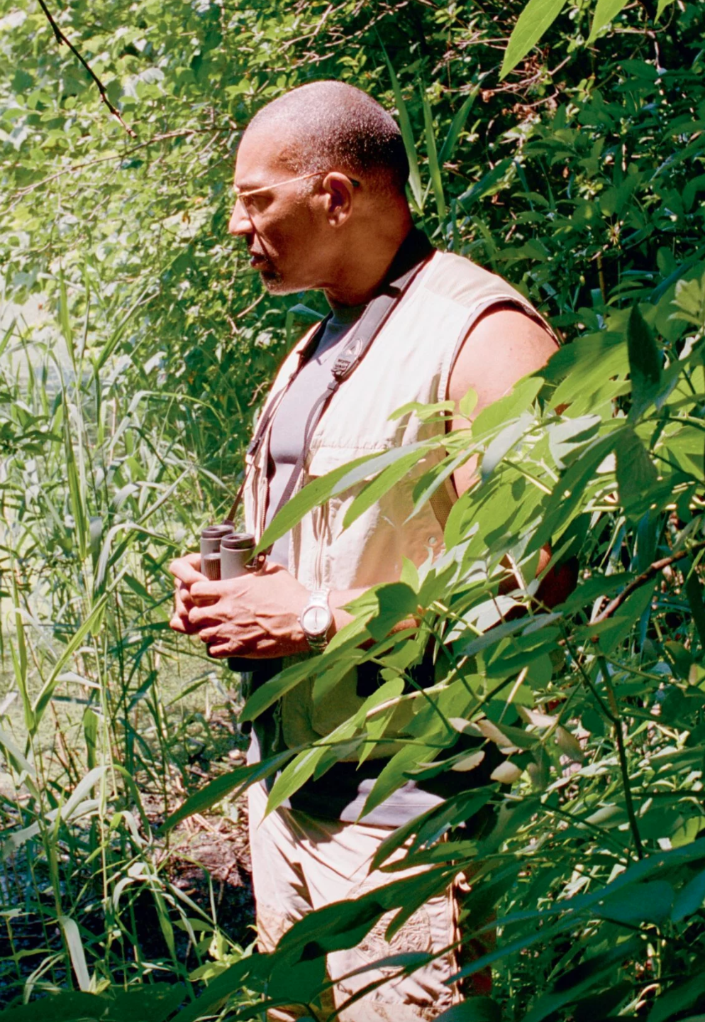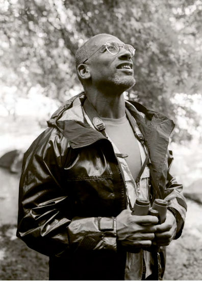 It is a warm Sunday in July and Christian Cooper, the celebrated birdwatcher, best-selling author and television presenter has invited me to join him at his favourite gaybar. Fittingly for a man who has shapedhis entire life around a passion for birds,Cooper’s preferred nocturnal hang-out is the Eagle, New York City’s famous two-storey leather bar, with a popular roof deck. Passing through the dark, grimy interior, decorated floor-to-ceiling with the machoartefacts of leather culture, I arrive at thetop. The incredibly muscular, strikingly handsome Cooper is easy to spot. It’s easy to make a connection between birdwatching and cruising: both activities involve nature, a hunt, beauty and visual enjoyment. In Cooper’s doctor at the beach in Provincetown look—a logo tank top, khaki shorts and sensible black Nikes—he blends seamlessly into a sea of daddies. It’s a rare opportunity to access a side of his life normally outside public consumption.“ Do people ever recognise you here?” I ask him.“ Sometimes Black men do. White people only recognise me when I’m wearing my binoculars,” he replies. He offers to buy a drink and orders a vodka tonic with lime for himself. Cooper mentions that the last time he went out was for Folsom Street East, the annual kink and fetish fair that takes placeon the street outside the bar. He describes the event as “always eye-popping.” I ask him if he’s into leather. “ I lean toward amore macho aesthetic,” he replies. “I workout relentlessly, so that goes hand in hand with leather. I’d say I’m leather adjacent.” At that moment, his partner of five years, John Zaia, greets us. They embrace, kissing hello, and John quickly scurries off to find his friends. We continue talking through the big news of the day: President Biden has dropped out of the presidential race. Cooper has already endorsed Kamala Harris on his Facebook page. The roofdeck fills up with men; it’s hot, sticky and full of potential. Cooper excitedly recalls the time a family of ravens moved into the Eagle, in the water tower above the roofdeck, a situation he describes as terribly distracting. “But don’t get me started on birds; I know you’re here to observe me inmy natural habitat,” he jokes. Our eyes wander and in unison fixate on thecross-fit body standing next to us. “That boysure does his squats,” Cooper praises. A few friends have arrived to join us for the night: a tan, bearded, white-haired man named David and a lively novelist named Blair who tells us that his forth coming book is titled ‘The Disco Witches of FireIsland’. While David and Cooper chat about Palm Springs, Blair corners me and, without knowing the venue for this profile, gushes, “Chris really is fantastic. He deserves everything that’s happening for him.” Even if you don’t remember Christian Cooper by name you already know the story. In 2020, on a sunny spring morning, an ugly, racially fuelled conflict made him world famous. The unfortunate one-minute incident, captured on his iPhone, has now been watched over 40 million times (on Twitter/X alone). The conflict illustrated what Cooper refers to as “ the second olde ststory in the Ramble,” a dense portion of Central Park famous since the ’30s as a gay cruising site. Aside from hookups, for years a never-ending battle has played out between rule-breaking dog owners and the bird watching community. Birders often find their activities disrupted by free-roaming dogs in areas of the park where leashing is mandatory. Years of frustration from ruined birdwatching sessions have led to some of them—Cooper included—occasionally adopting a pre-planned strategy: a two-part protocol that involves carrying dog treats to lure unleashed dogs, aiming to initiate a discussion with their owners. If the conversation results in leashing, the interaction ends. If not, birders take asecond step: filming step: filming the offender until they comply.