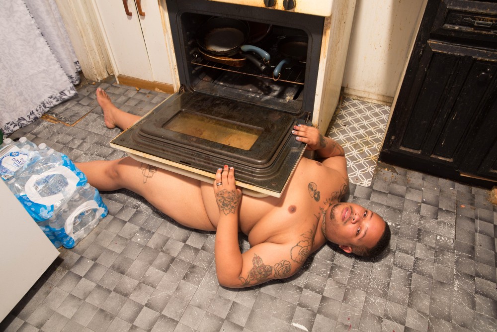 You explore cultural paradoxes, like your presentation of the homo-thug. The cliché of this stereotype would be a man who's hard, who maybe has gone to prison, who is maybe involved in drug dealing, a king of the streets who presents himself as an alpha. In porn this type is often projected as the ultimate fantasy to be dominated by, but you show them being open to domination. Like the piece in your show at Company Gallery where the text read, ‘Butch in the Streets, Femme in the Sheets’.