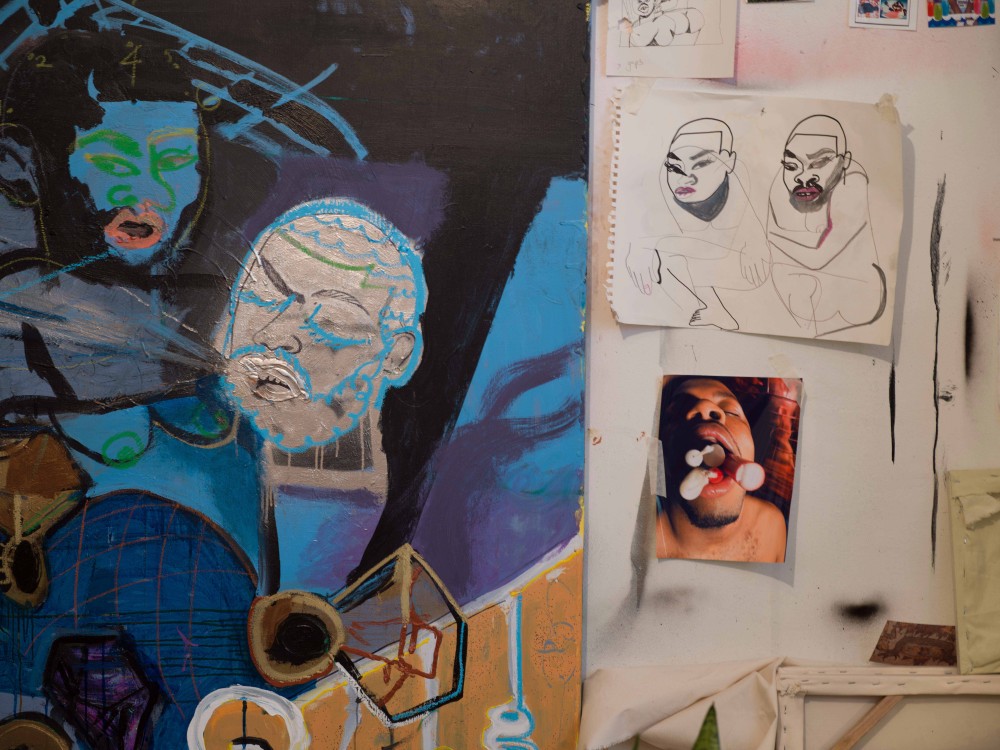 Jonathan: I didn't start painting until I got to grad school. That's where I started making large-scale images of unconventional, unapologetic, non-binary, queer black bodies: men that wear makeup, bodies that sag, have titties, that maybe have a small dick or a big asshole.