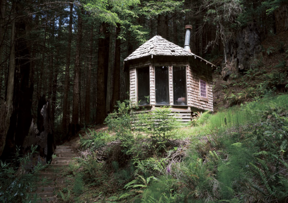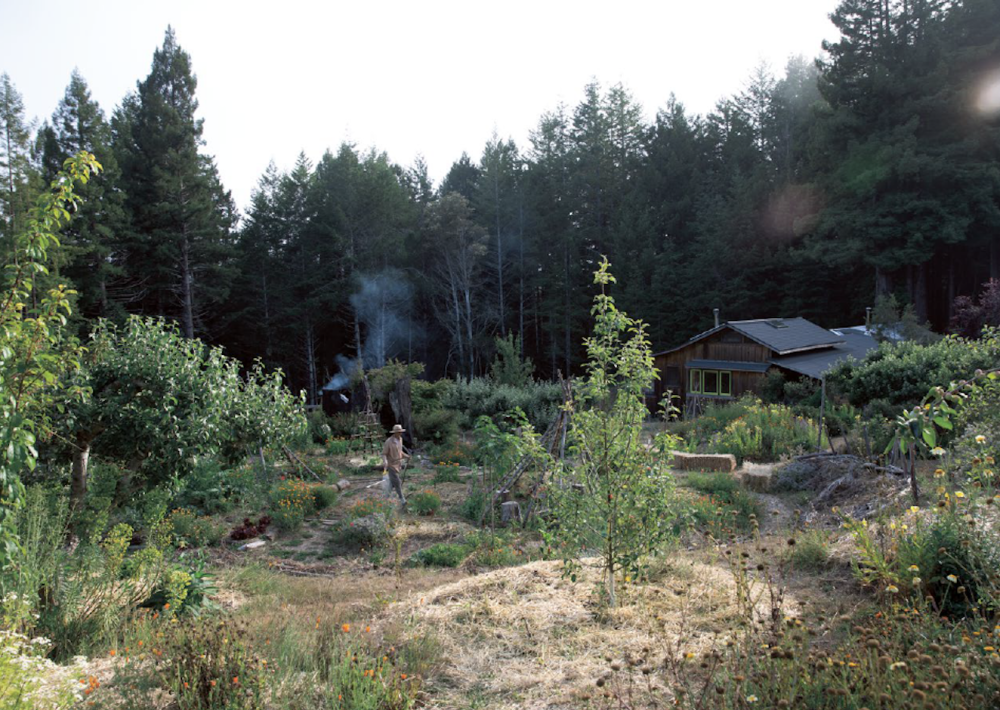 Seven years ago, the artist Fritz Haeg purchased Salmon Creek Farm from the commune’s original founders. Located in Mendocino (a coastal town in northern California that has a rich history of intentional living experiments), the 33 acres of redwood forest sit on top of a ridge. The dramatic landscape includes a main house, nine cabins, a greenhouse, an outdoor kitchen, a hot tub and sauna, a triangular sundeck, a pond, a creek, an apple orchard, and a vegetable and flower garden. When Haeg took over the property it was being used for rentals. With the help of a rotating community of guests he painstakingly completed a breathtaking restoration. This year, the community is celebrating its 50th anniversary.