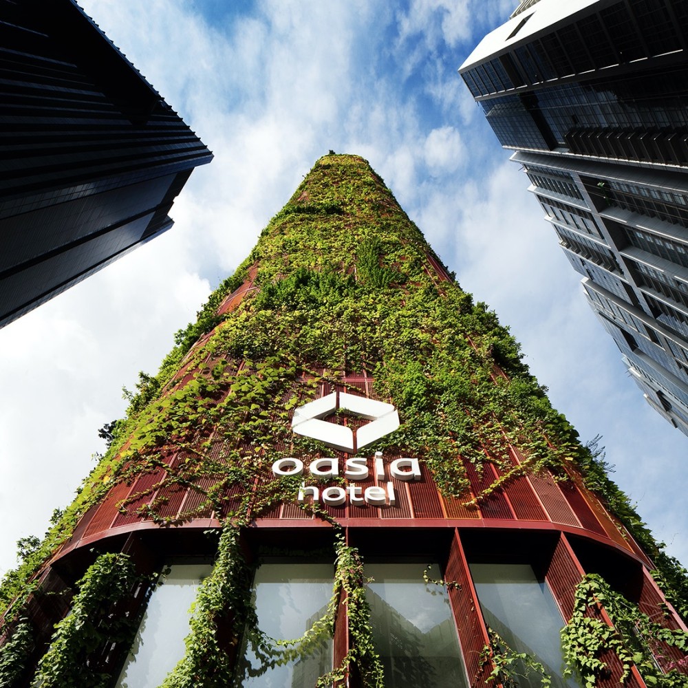 WMS: That one is quite obvious. It’s how much placement of green there is. The PARKROYAL on Pickering Hotel [2013], for example, has a green-plot ratio that is 250 percent higher than its original site. And the Oasia Hotel’s green-plot ratio is 1,100 percent higher. It more than satisfies its own footprint, so if another building doesn’t do it, we’re generous enough to do it for ten other sites. [Laughs.]