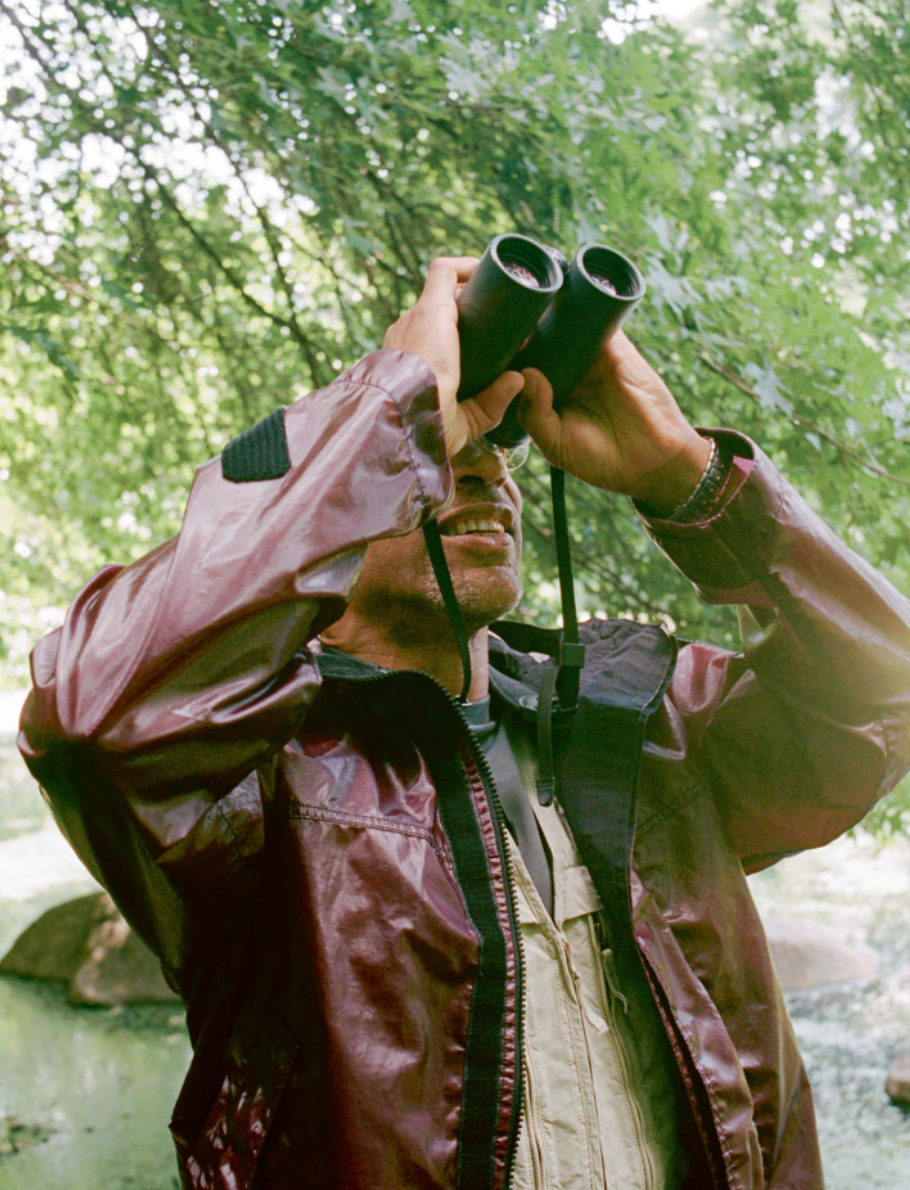 On a sunny morning the week after we first meet, I join Cooper for breakfast at Veselka, the legendary East Village Ukrainian restaurant. Considering his youthful appearance, it’s hard to believe that he hasjust celebrated his 61st birthday. He joins me after his daily hour-and-a-half work-out; today his focus was legs. I’m mesmerised equally by his stunning smile and his signature tight-fitting dad outfit. Today it’s a plaid shortsleeved shirt and khaki shorts. With the same energy that defines him as a TV host, Cooper insists that I try his breakfast pierogis. He clearly thrives on sharing his passions. In conversation, he answers politely, somewhat reserved. Our small talk never quite hits a stride until the topic shifts to birds and information starts to flow with comfort and ease. For Cooper, birds are the easiest gateway into a wider fascination with nature. “There’s no place you can go where you won’t find birds,” he says. “Just like us, their primary senses are sight and sound. They communicate the same way we do. They make incredible sounds. They’ve got gorgeous feathers and incredible patterns and colours. Birds just hit that sweet spot: we can relate to them and appreciate them everywhere. Plus, they’re dinosaurs, so they’re cool.” If he had to pick one bird that he relates to the most, it would be the Blackburnian warbler, a small bird with bright plumage (“very colourful, very dynamic, very high energy; I think of them as butterflies with personality”), while if he could be reincarnated as any bird he would most like to come back as a golden eagle. “Masters of the air, apex predators,” he says. “And in ancient history, they are always associated with kings. They’re the definition of majestic.” The only time our conversation has a slight blip is when I foolishly ask him if he would ever own a bird. Cooper’s friendly tone temporarily freezes. “Would you blind Picasso? Would you cut off his arms?” he replies in a cold deadpan. Just then, an older woman points him out to what seems to be her husband. The excitable, string bean of a man makes a beeline up to our table. “I’m sorry to interrupt, but I saw you on ‘Democracy Now’ yesterday, and I just want to say your whole perspective is excellent. You’re so balanced, so sympathetic to that woman who mistreated you, and this whole thing about birding and how birds are free. I just enjoyed it all very much. Congratulations on all your success,” he says in a fatherly tone. Cooper smiles his signature Hollywood smile, “Thank you very much.” The man notices his paperback memoir on our table. “I’ll definitely pick that up!” I ask Cooper if he collaborated with a ghost writer on his bestseller and he shakes his head aggressively. “No! I wrote a hundred percent of it myself. It’s interesting how much of my comic book skills I used to create this memoir. I had never even read a memoir; it’s my least favourite genre of book. So I found other ways to tell the story, like in one passage I start off by describing the racial history of the park.” He points out a line for me to read: “Into this woeful history, tangled like poison ivy through the beauty of the park, a cocker spaniel named Henry rushed off his leash...” “When I sent it to the editor, I got a note back on that line saying, ‘Damn, that’s good.’” The memoir’s incredible success was key in securing his host position with National Geographic, which is a position that seems tailor-made for Cooper. In each episode of ‘Extraordinary Birder’, he thrives, indulging in extreme birding. In Hawaii, he hikes through volcanic terrain and gets access to the Forest Reserves (which are generally closed). In Puerto Rico, he’s invited to peer at the testicles of an endangered parrot. In New York City, he’s allowed to scale the top of the George Washington Bridge to visit a peregrine falcon’s nest, checking in with a mother and her chicks. “Climbing up the bridge felt like being in Fritz Lang’s film ‘Metropolis’,” he says. “You look down, and hundreds of feet below you is the Hudson. You look up, and you hear her. She’s zooming around the superstructure, and the whole bridge is amplifying her voice. She’s pissed because you are near her nest. You realise you’re in her territory. This is where she has mastery. She moves around here the way we walk down the street. And you’re seeing things from her perspective, that dizzying look down at the river. That moment was awe-inspiring.”