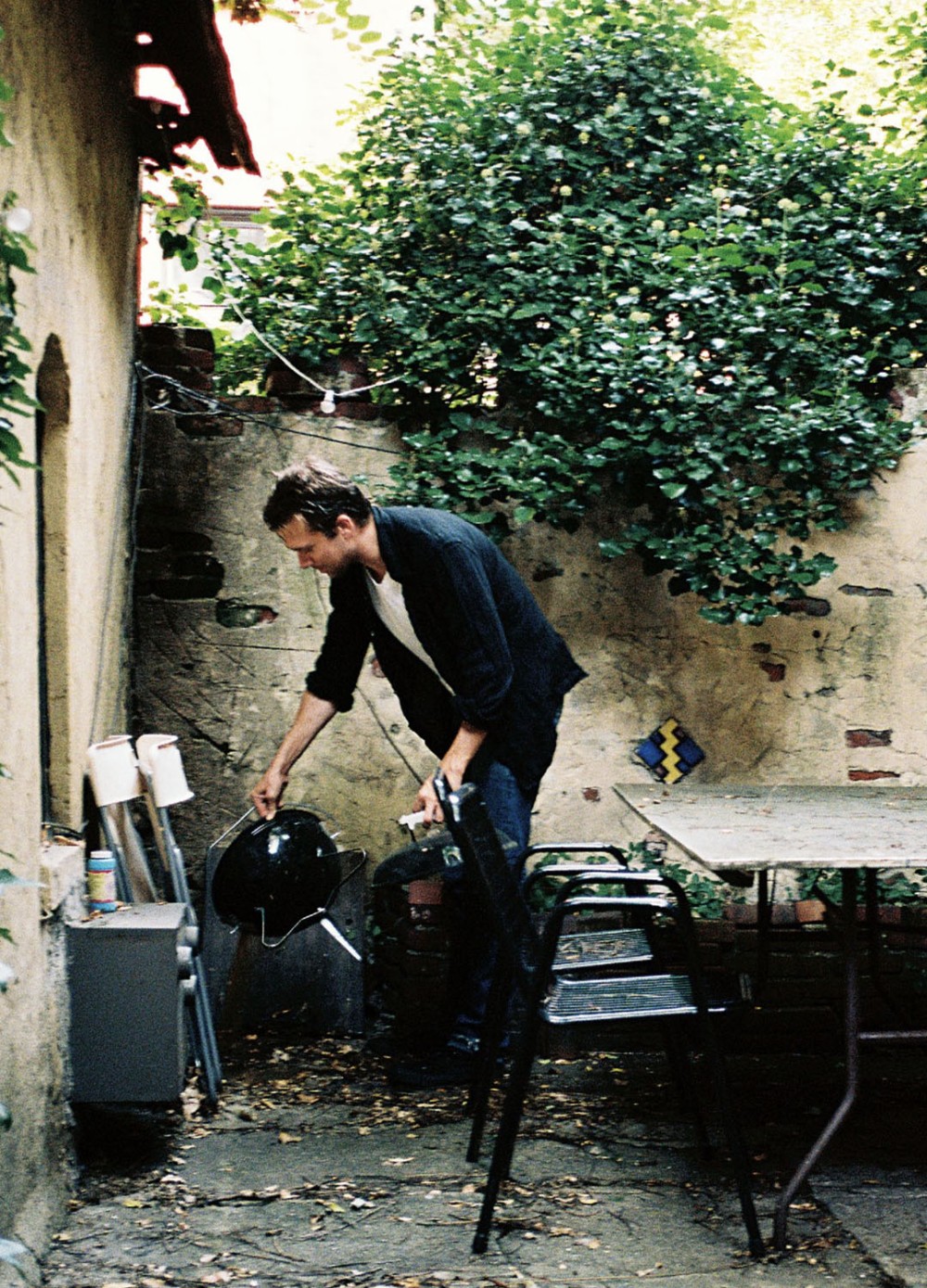 As the editor of the ultra-chic downtown fashion magazine V, Chris Bollen made what could have been something strictly to look at into something equally compelling to read. Chris gave V both heart and intellectual punch, interviewing heavy weights such as Gore Vidal, Joan Didion. Norman Mailer, Salman Rushdie and Robert Altman. Recently Chris made the move into publishing’s major leagues adding his name as Editor-In-Chief to the historic legacy of Andy Warhol’s Interview. His plan is to return the magazine to a place that New Yorker’s will be proud of again, dumping the celebrity worship for a focus on personality. Seeing Chris’s place his own personality becomes clear, right from the unique entrance. To get there, you walk through a womblike hallway in a turn of the century West Village apartment complex. The back door opens onto something unheard of in the city: a front lawn. In the middle of this sizable private courtyard filled with tall trees and ferns is a free standing one story cottage, a place that looks more like the home of Snow White’s seven dwarfs than a dashing young editor. With this home Chris has pulled off the impossible. He created a tranquil writer’s retreat in heart of the urban jungle. His outdoor picnic table is the perfect place to spend a late summer's night.