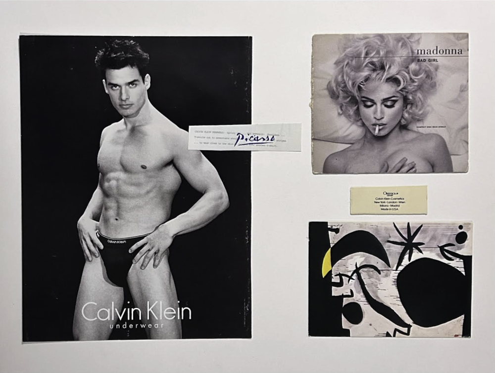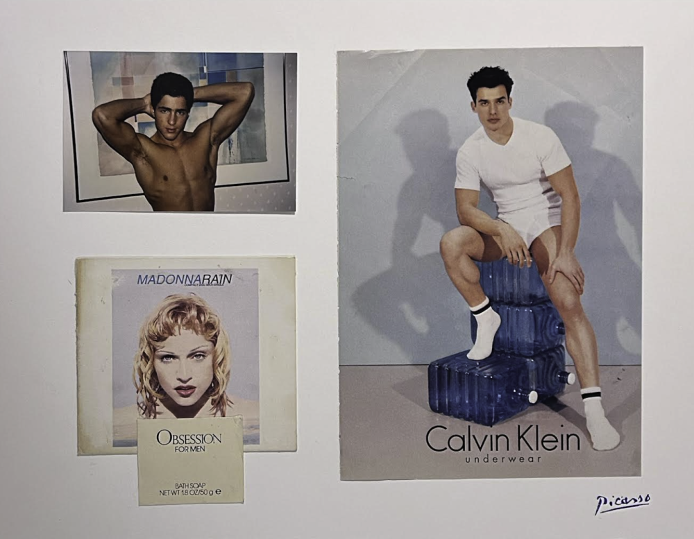 Prada’s latest series of collages continues her tendency to queer male, Modernist, hero-artists, such as Picasso and Miró, by mixing their work with Calvin Klein and Versace advertising campaigns, images of Madonna at the height of her power, and models wearing form-fitting fashions taken from the forgotten 1970s gay men’s clothing catalog AH MEN. Prada’s instinct for sharp juxtapositions puts gay cultural achievements on an equal footing with some of the most canonical visual artists of all time. Prada’s work communicates a relentless devotion to and reverence for the powerful transcendence that gay pop culture imagery has offered her, Capitán, and their peers.