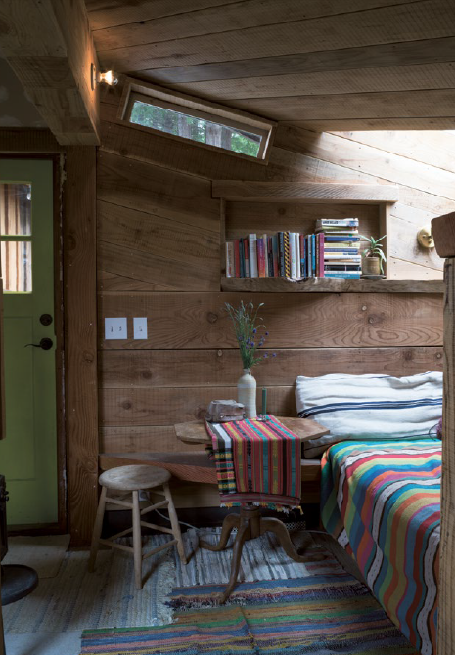 First I invite the community members, and if there’s still space I make an open call. I just sent out that email this morning. At the end of that week, we can’t believe what we’ve accomplished. In a place where everything moves so gradually, to have that sudden burst of creation is really fun. I bet. Upon taking this place in, I started to think about how much commune aesthetics are co-opted and popularised by commercial entities like hotels, restaurants, furniture and house-ware companies. They all romanticise this life. I can’t articulate why, but it immediately feels different to experience the real thing. The cabins are so profoundly human. I do think that when you walk into them, you feel it. Everything here is built at a human scale.