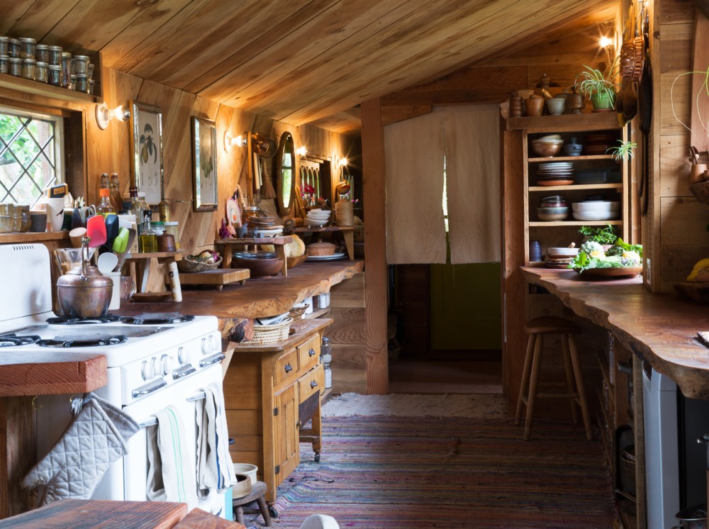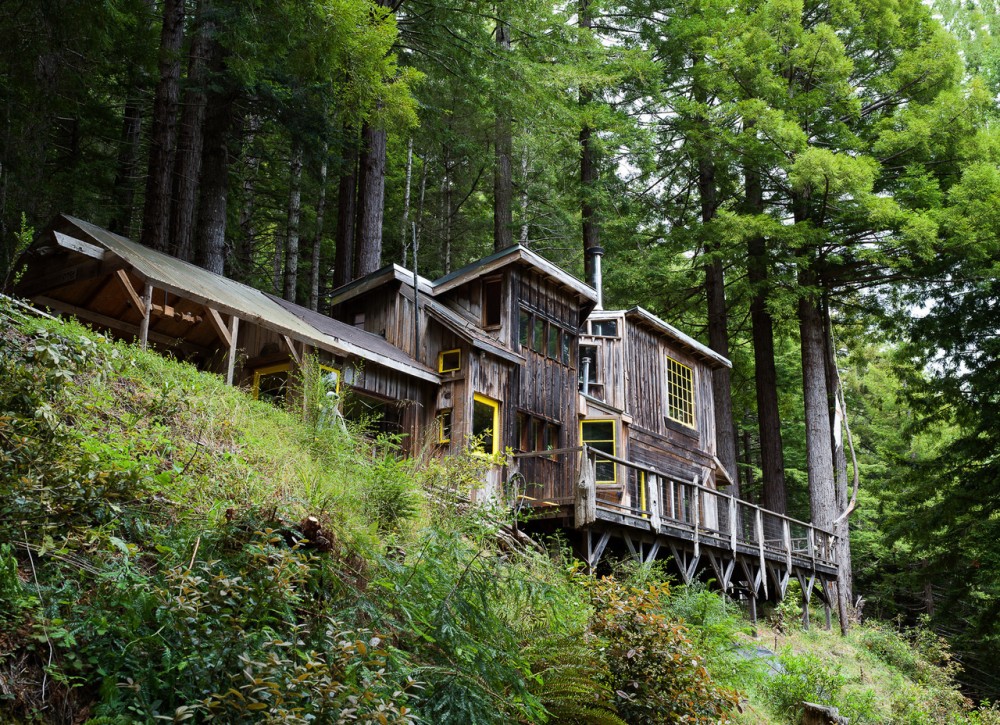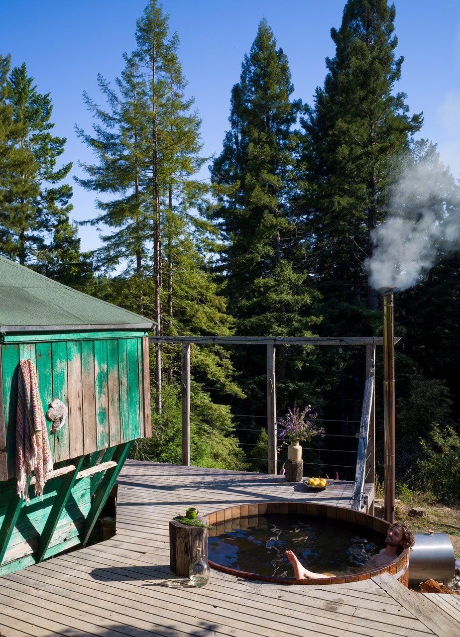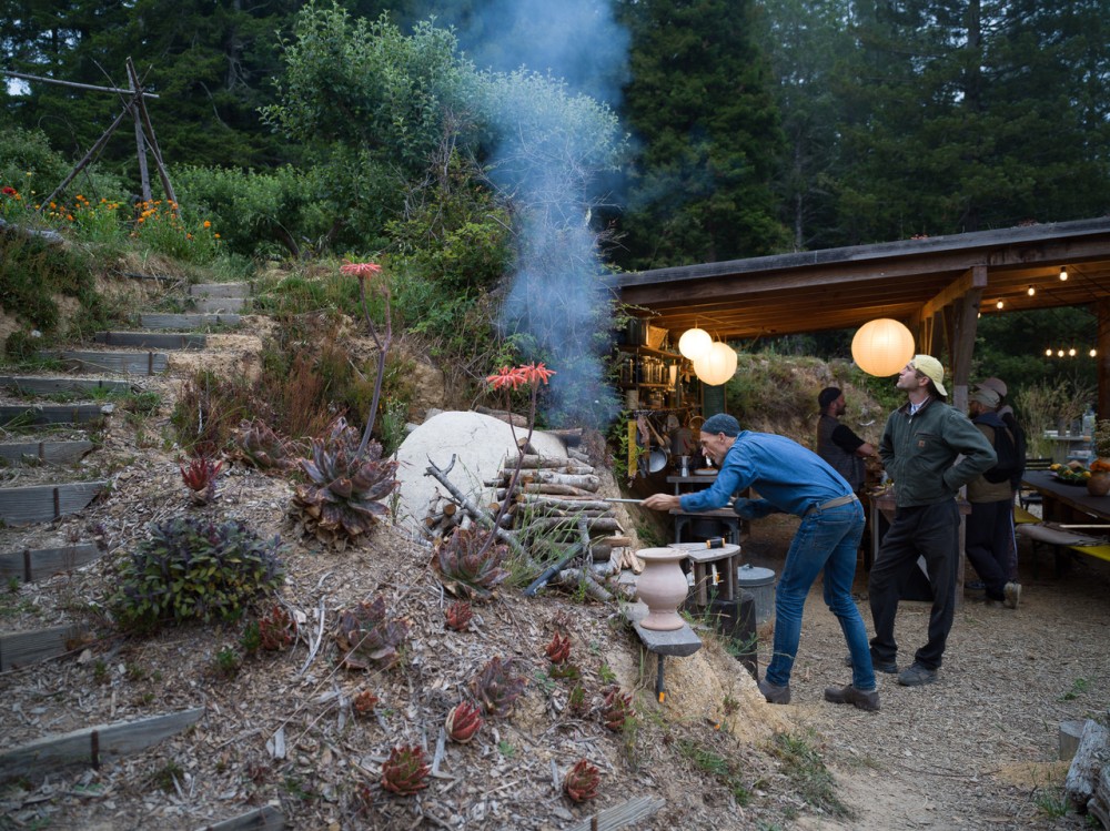 Seven years ago, the artist Fritz Haeg purchased Salmon Creek Farm from the commune’s original founders. Located in Mendocino (a coastal town in northern California that has a rich history of intentional living experiments), the 33 acres of redwood forest sit on top of a ridge. The dramatic landscape includes a main house, nine cabins, a greenhouse, an outdoor kitchen, a hot tub and sauna, a triangular sundeck, a pond, a creek, an apple orchard, and a vegetable and flower garden. When Haeg took over the property it was being used for rentals. With the help of a rotating community of guests he painstakingly completed a breathtaking restoration. This year, the community is celebrating its 50th anniversary.