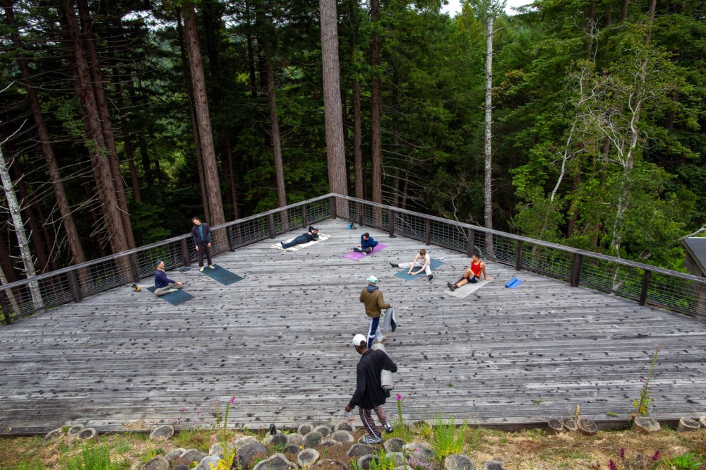 Haeg has queered the originally heterosexual commune, which means more than a focus on inviting mostly queer guests, but also adhering to a concept of beauty as political power and a structural shift that favours a transient community over a fixed set of residents. (Haeg and his life partner, fellow architect Jeremy Schipper, are the only members that have made the place their primary home.) After a week as a guest at Salmon Creek Farm, I resolved it felt like a hybrid, drawing elements from many different typologies: nature sanctuaries, artist residencies, kibbutzim, eco-resorts, youth hostels, bed and breakfasts, summer camps, and wellness retreats. Haeg’s approach to hosting shares the rigour and full-life philosophy of the Martha Graham Dance Company but combined with the celebration of queer freedom of the Radical Faeries sanctuaries. But after having the opportunity to sit down with the community’s de factor leader in his recently completed kitchen, it became clear that beyond all of these other references, what you’re actually living in is Haeg’s most ambitious art project and every visitor plays a role in Salmon Creek Farm’s grand experiment.