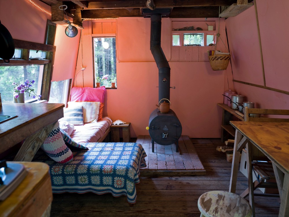 The existing cabins were so inspiring. They were built in the ‘70s, and some were made by kids with no real carpentry skills. The building materials were scavenged from deteriorating chicken coops. They had few raw materials and were building with no power, so they only used hand tools and chainsaws. Since then, there’ve been all these hands on them over the decades. There’s so much love in each of these little structures. There’s a fluidity too; they’re beautiful and handmade, but never precious. If you’re a novice carpenter it’s a very liberating place to start building because you’re not going to make anything worse; you’re only going to make it better. If you’ve made something level, it probably will be the only level thing in the whole building. We also host an annual carpenter week.