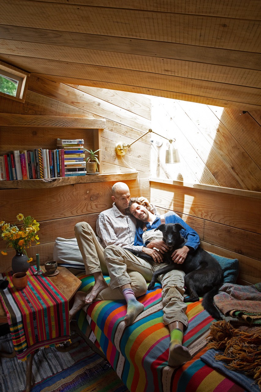 Yes, though I really wanted to focus specifically on cultivating a regular community of people who continuously return. From the start you knew that you didn’t want it to function like a traditional commune? I could see how people would want that in certain periods of their life, but I wanted some-thing more dynamic, where people would come in with new ideas and leave and go back into the world and take whatever happened here with them, and then return again later. I wanted an exchange and a flow. Well, that’s probably a by-product of it being a queer space; heterosexual communes are typically somewhat organised around sharing the responsibility of child-rearing. It’s true, if you don’t have kids in the mix, things can be more fluid; the structure doesn’t require as much stability. The original commune had a lot of kids and that informed a lot of their choices. But the structure you adopted requires the task of continuously organising guests, which has become a big job, I imagine. It’s constant. I’m the administrator, caretaker, custodian, housekeeper, and gardener. People are getting in touch every day about visiting and there’s a calendar and a spreadsheet with all the cabins and dates and who’s in what cabin, what night. Each season there’s a reckoning, ‘How well did things work? How should this place function? Who’s here? Who’s coming? Who isn’t coming? Who should be here and isn’t? Who wants to be here but can’t be? Who has access? Who doesn’t?’ Originally I naively thought there’d only be one single way that people would be hosted. We’re all equal here. Everyone comes and contributes the same, but in society we’re not equal and those inequalities follow us in here. Some people have more time than money, others have more money than time. Some people are eager for manual labour and find that fulfilling, a welcome change from being stuck in front of a screen all the time. Other people don’t find manual labour inspirational at all and are looking for something else. There should be room here for a lot of different people who need a lot of different things. One aspect I feel strongly about is creating a space for those who don’t generally feel safe or welcome in rural spaces and providing a sense of sanctuary, specifically for queer people and people of colour, for whom being in nature isn’t always easy. For some people there’s not even a feeling of basic human bodily safety in rural spaces. Hopefully when you come through the gates you feel like this wilderness is safe and welcoming and you can be comfortable here.