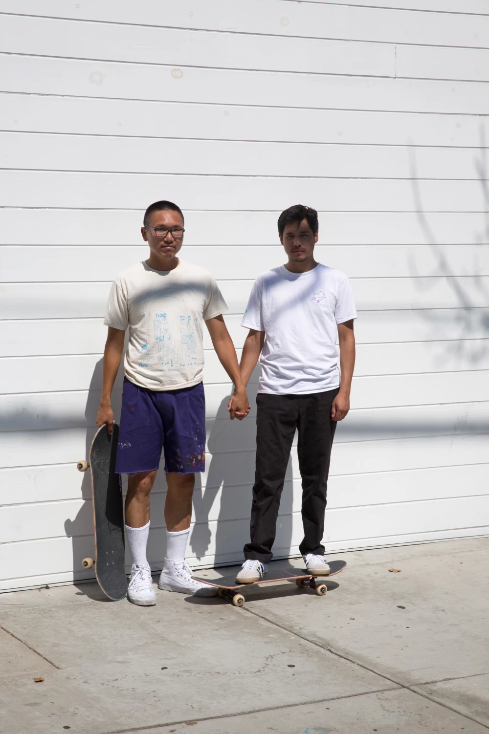 Ironically, America’s disgraceful 45th president can be indirectly credited for a handful of substantial developments in patriarchal dismemberment: mainly, the #METOO movement and the election of Danica Roem (the first transgender women to win public office in the United States) but the most unique act of reactionary activism has been the arrival of over a thousand pink skateboard decks distributed throughout American cities and beyond. Chinese-American artist Jeffery Cheung’s hand painted boards showcase imagery that until recently was unthinkable in the macho, predominately white, homophobic world of skating. His cartoons depict chubby, naked, same-sex, mixed-race couples embracing with joyful smiles. Each board is branded UNITY and paired with empowering slogans such as: “Don’t be Afraid of Who You Are,” “Queer Skateboarding: Like it or Not,” or “Together as One.” These decks are tools of defiance. Using one empowers its owner to be a fearless queer skater, and that visibility encourages closeted skaters to also participate. I sat down with Jeffery and his boyfriend and key collaborator Gabriel Ramirez in their downtown Oakland headquarters, a lofted studio above Wolfman Books. The humble, almost reluctant leaders of the new movement explain how in just over a year they managed to unite queer skaters worldwide and what their vision is for the future of UNITY.